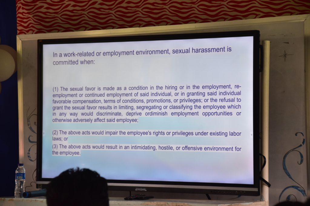 Meanwhile, Atty. Nagaynay delivered an in-depth discussion on Republic Act No. 11313, also known as the Safe Spaces Act, explaining its legal implications and how it protects individuals from gender-based harassment in public spaces, schools, workplaces, and online platforms.