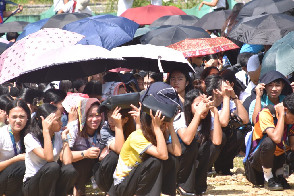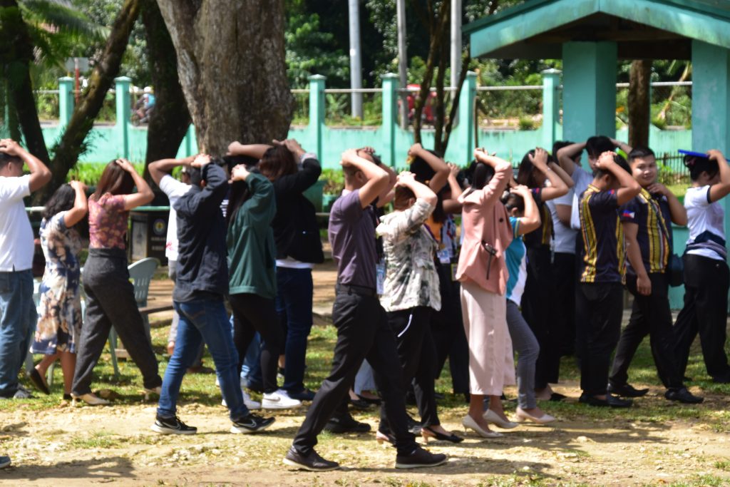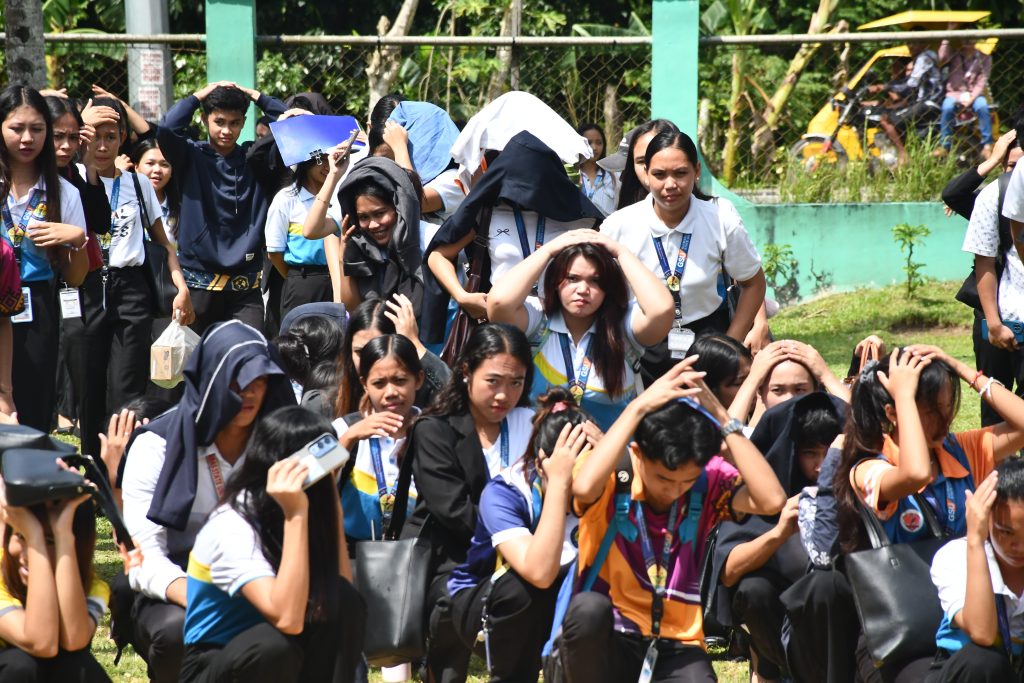 Following the nationwide alert signal, participants performed the “Drop, Cover, and Hold” procedure, followed by the evacuation and headcount in designated open areas. LDRRM representatives evaluated the conduct of the drill, particularly the evacuation time, orderliness, discipline, and adherence to safety protocols.