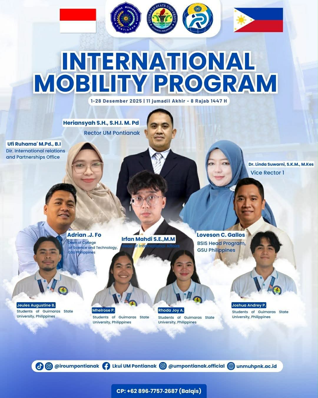 The College of Science and Technology (CST) proudly sent off its Batch 4 Student and Faculty Exchange participants as they departed on November 30 bound for Universitas Muhammadiyah Pontianak (UMP), Indonesia, to take part in the International Mobility Program.