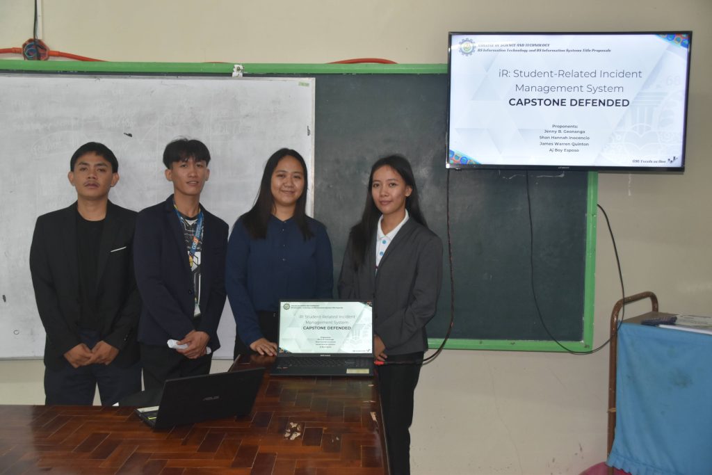 The final defense served as the culmination of months of planning, development, and testing, where students presented their capstone projects to a panel of evaluators. Each group showcased innovative information technology solutions designed to address real-world problems, demonstrating their technical skills, creativity, and readiness for professional practice.
