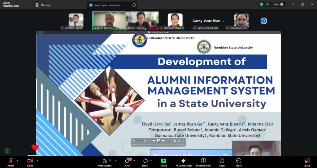 Instr. James Ryan B. Ga presented the research titled “Development of Alumni Information Management System in a State University,” which focused on designing an information system to enhance alumni data management and institutional connectivity.