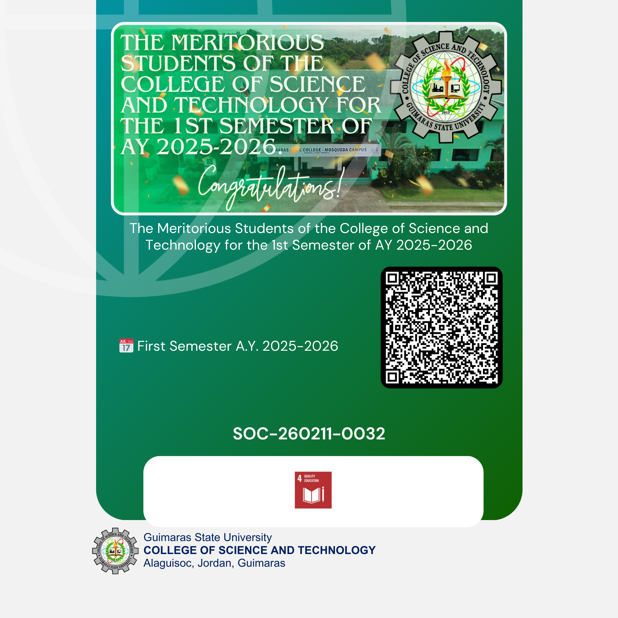 The Meritorious Students of the College of Science and Technology for the 1st Semester of AY 2025-2026