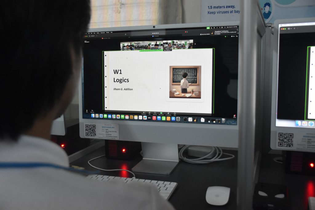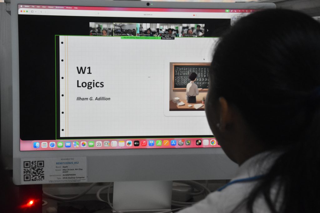 The international class focused on Discrete Mathematics, with Logic as its first topic. The lesson was delivered by ITS faculty member Mr. Ilham Gurat Adillion, who facilitated the discussion among participating students from both institutions. Joining the session on the CST side was Prof. Reiner Jun C. Alminaza, who is also part of the COIL program, together with the second-year BSCS students.