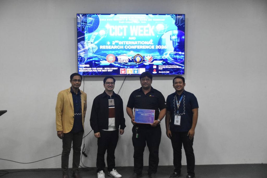 Representing CST were faculty and student researchers who showcased studies focusing on Artificial Intelligence and Machine Learning applications. Among the faculty presenters was Dr. Simeon Cainday III, who presented his research titled “Detection of Banana (Musa Acuminata x Balbisiana) Diseases Using Convolutional Neural Networks.” His outstanding presentation earned him the Best Presenter Award in the Faculty Category.