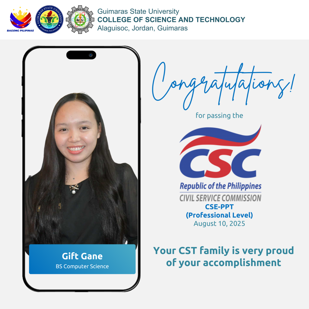 October 15, 2024 | CSC Website Two College of Science and Technology Students Passed the Civil Service Commission Pen and Paper Test (CSE-PPT) Professional, to wit: Your CST Family is very proud of your accomplishments! This post was reviewed and […]